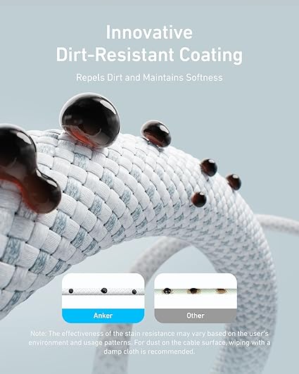 - Dirt-Resistant Unibody Cable: Offers a stylish, unibody design with a dirt-resistant coating that prevents buildup and maintains the cable's clean appearance.