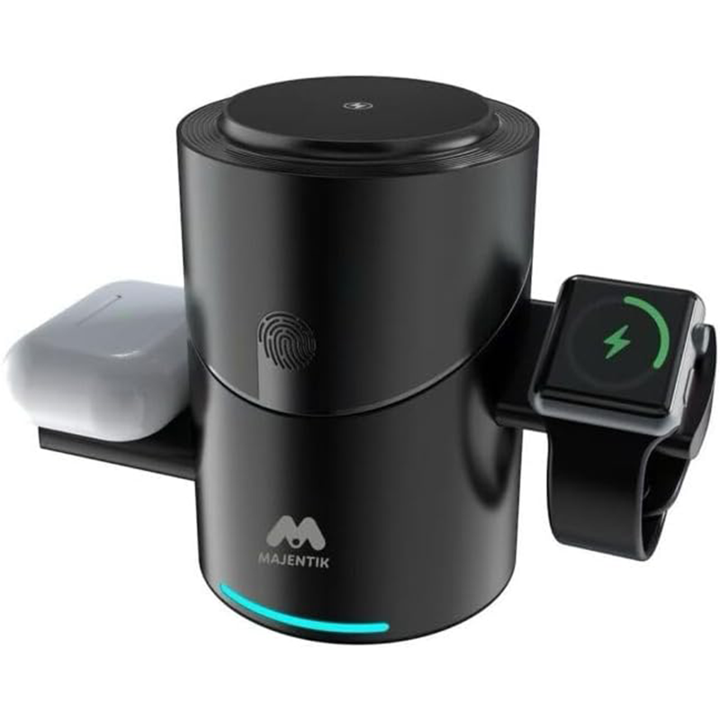 - Keep all your essential devices powered up with the Majentik MW20 3-in-1 Wireless Charging Station. Designed for efficiency and convenience, this charger allows you to simultaneously charge your smartphone, smartwatch, and wireless earbuds without the hassle of multiple cables.
